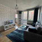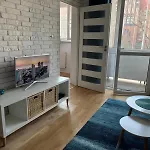Apartament Turkusowy lägenhet tillhandahåller plattskärms-TV med kabelkanaler, kokvrå och balkong.