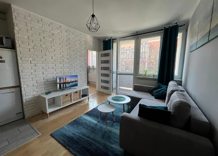 Det är beläget 1,3 km från Universitetet i Szczecin och 5 minuters bilfärd från Röda rådhuset. Szczecins centrum ligger omkring 1 km bort. Bistro Na Jezykach och Radecki Restauracja Zbigniew Radecki finns inom 150 meter från lägenheten Apartament Turkusowy.